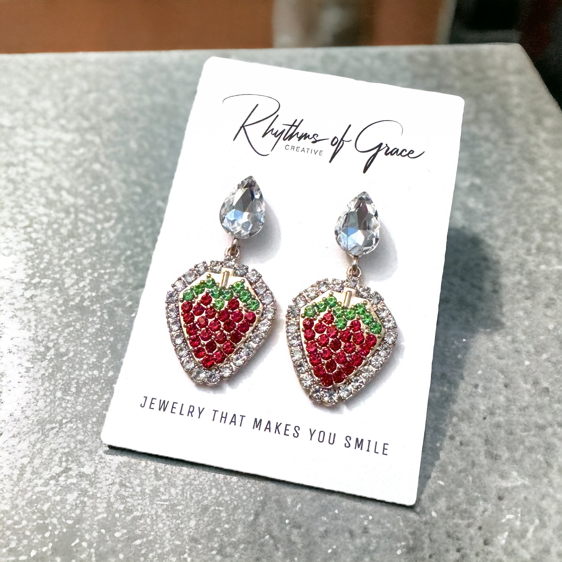 Indulge in sweet style with these adorable strawberry earrings! Add a pop of fruity fun to your look with these whimsical and eye-catching accessories. Perfect for summer picnics, fruit-themed events, or anyone with a sweet tooth for fashion! Embrace the berry beautiful trend and grab your pair today!