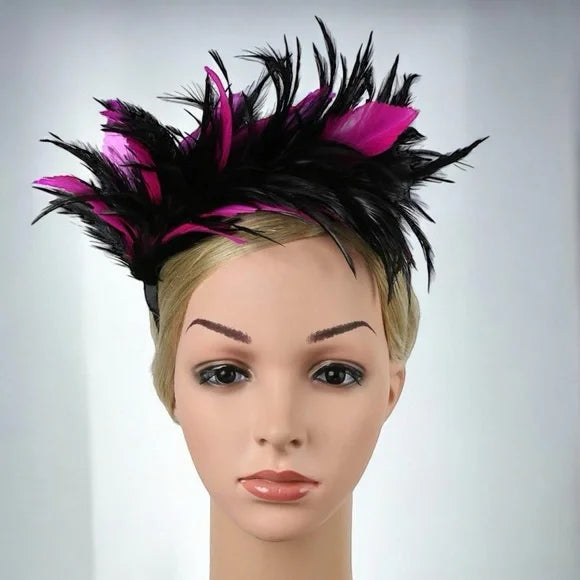 Stunning Pink & Black Feathered Headband