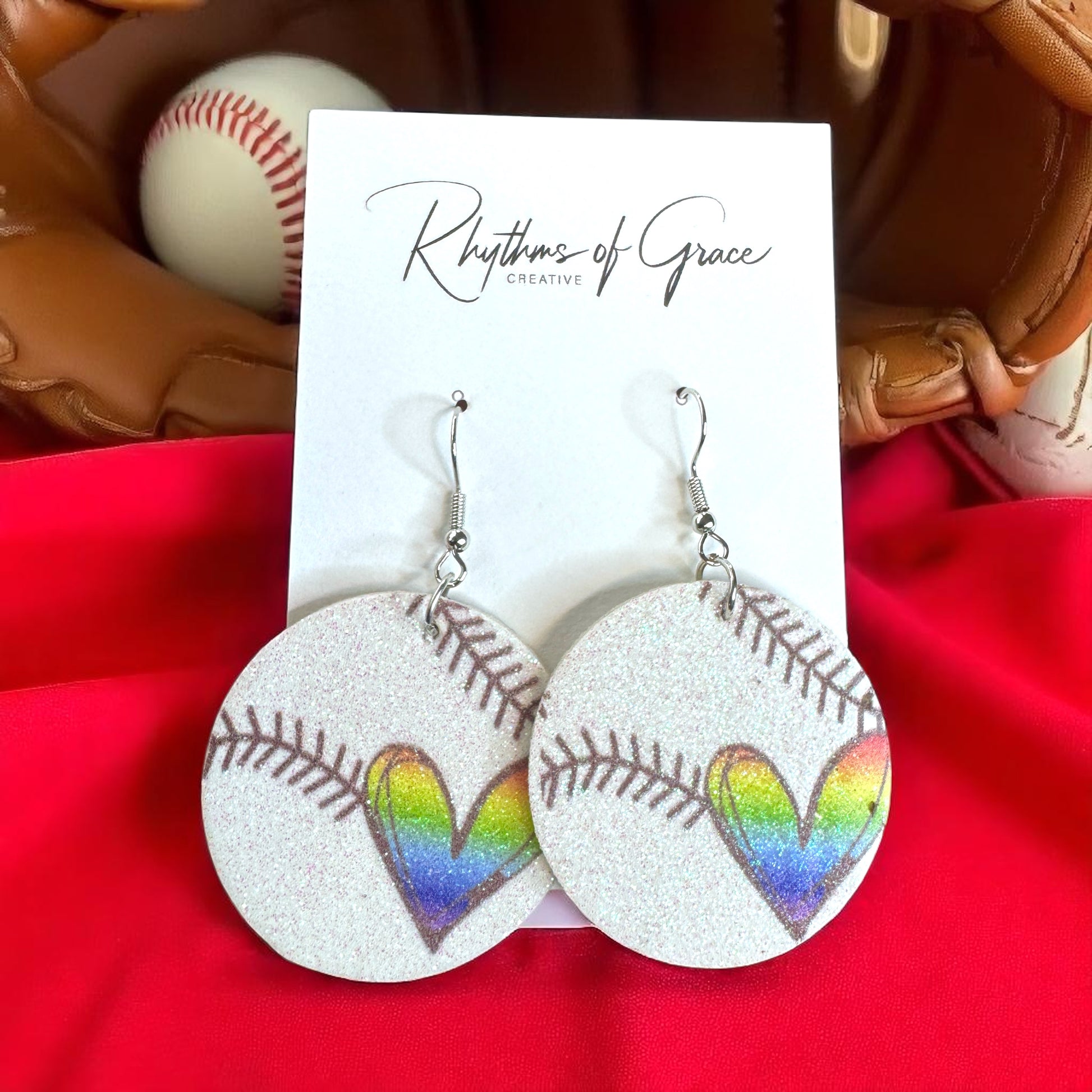 Swing into Style with Our Rainbow Heart Baseball Dangle Earrings! ⚾️🏳️‍🌈
