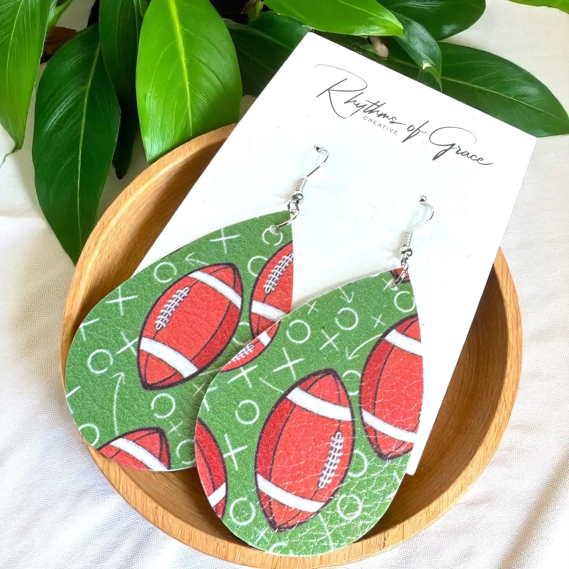Score major style points with these charming Football Playbook Dangle Earrings! Perfect for game days, tailgate parties, or everyday flair, these unique teardrop earrings are a must-have for any football fan.