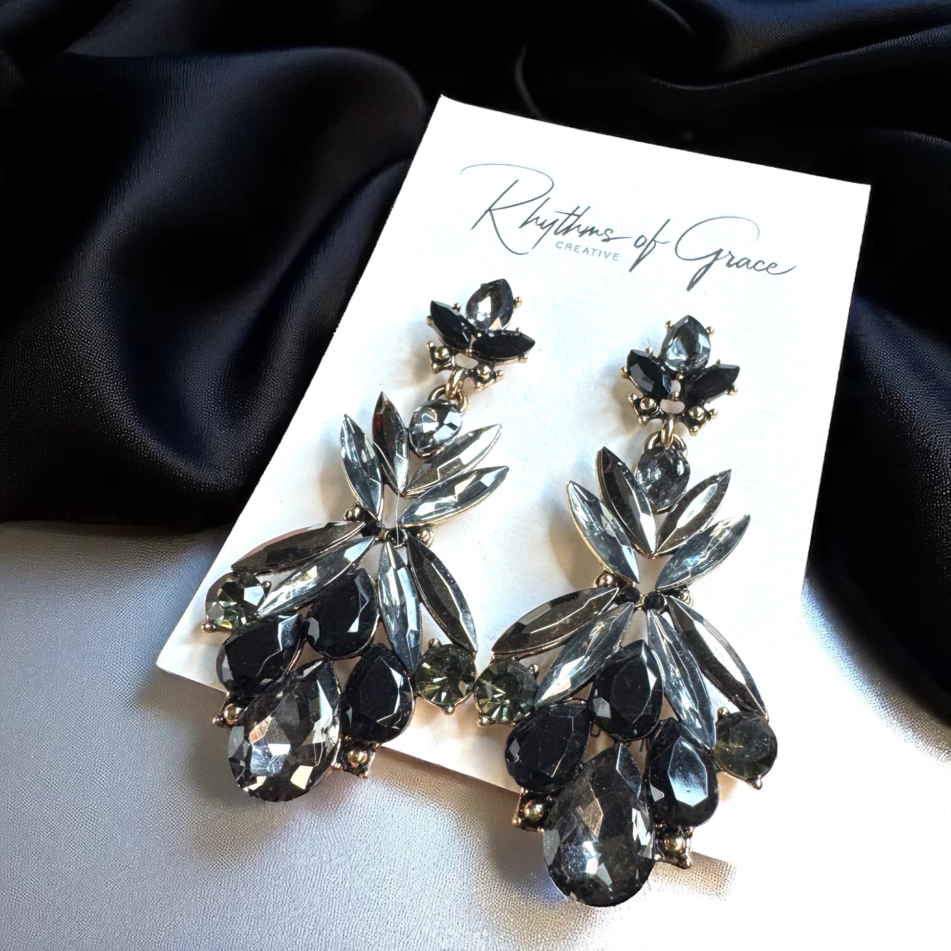 Don’t miss the chance to add these elegant black and gray rhinestone dangle earrings to your accessory lineup. Click 'Add to Cart' now and embrace timeless elegance!