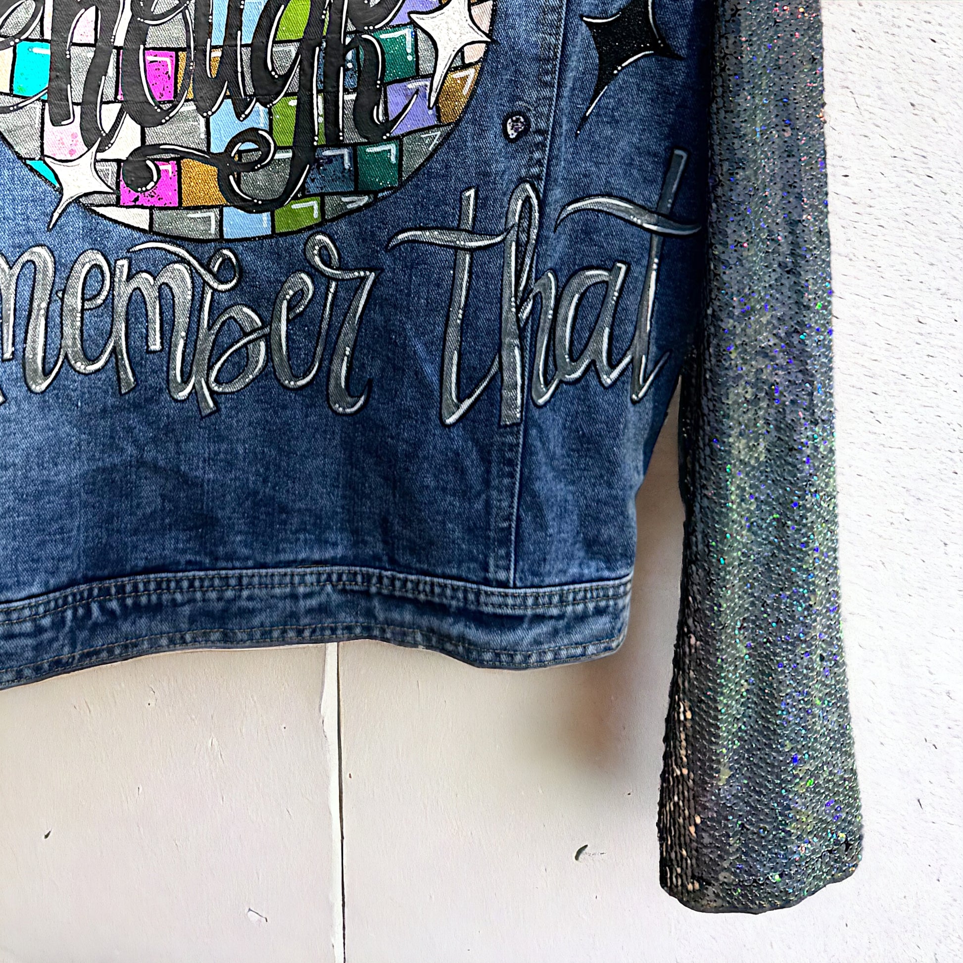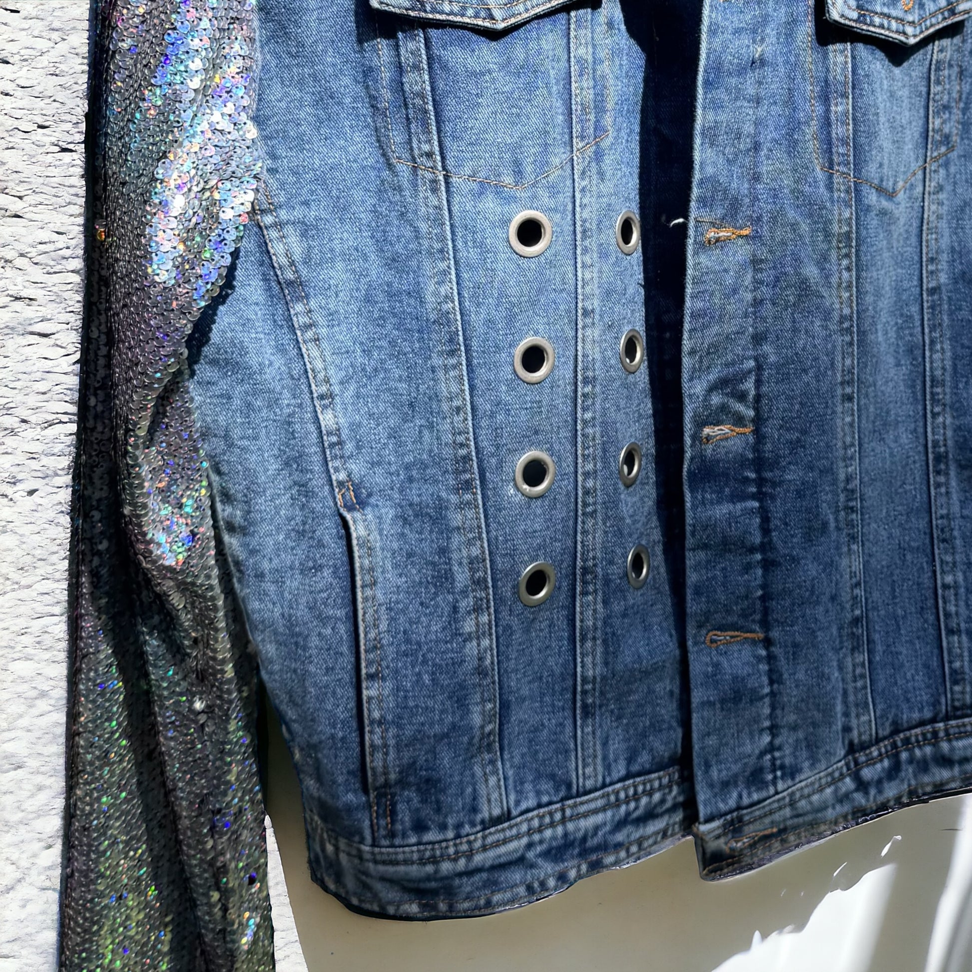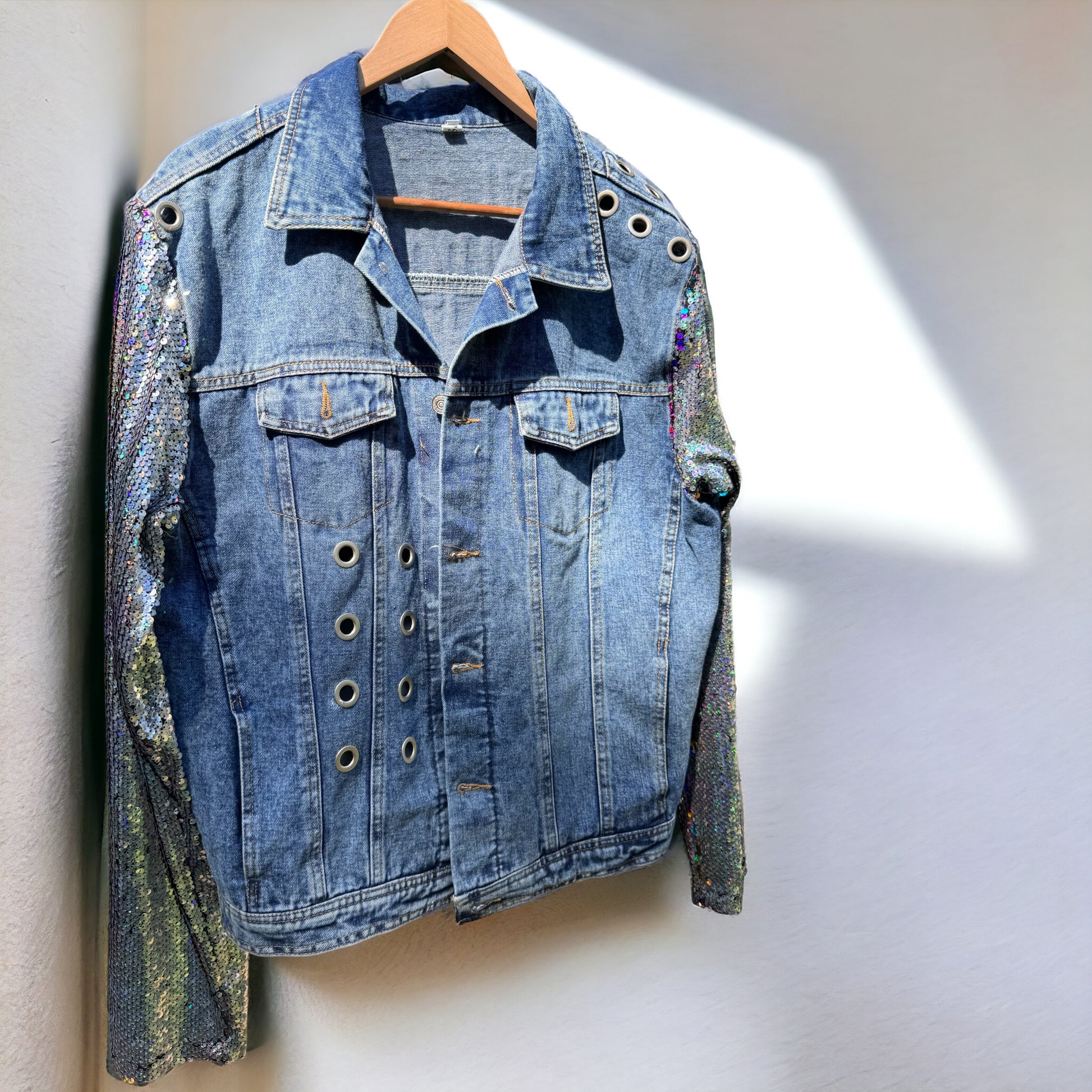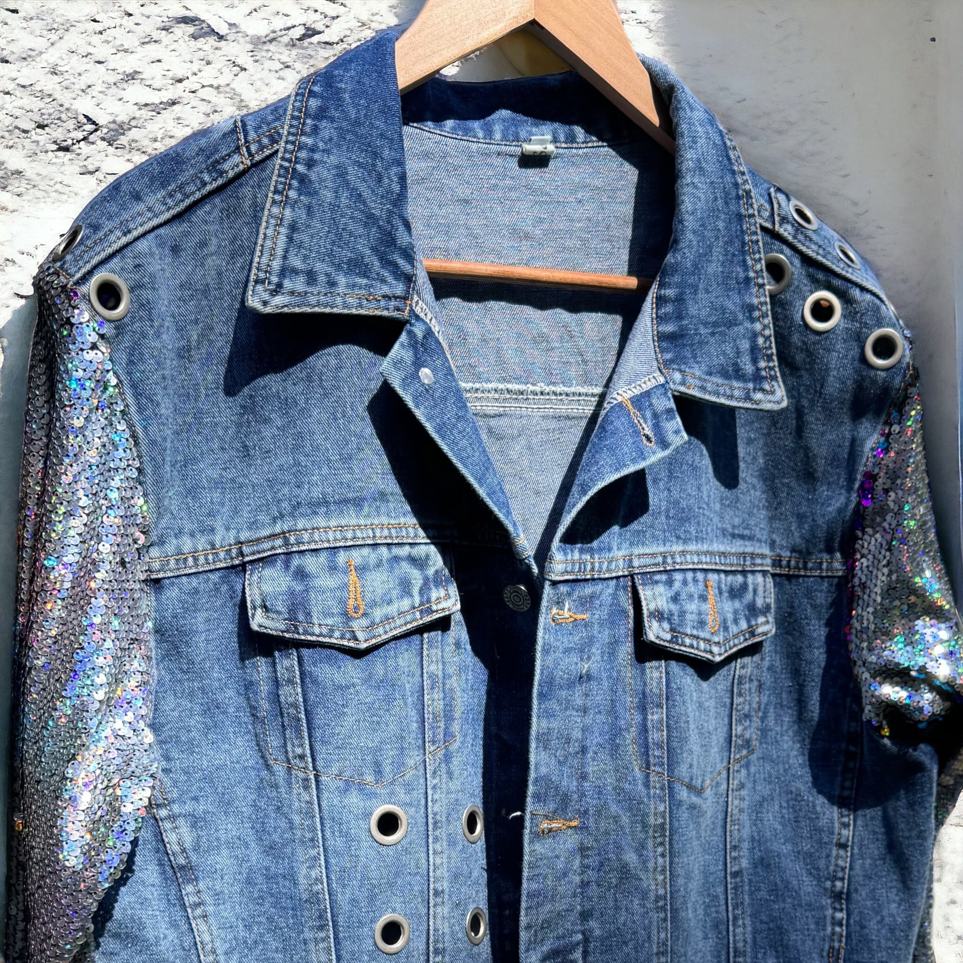 Upcycled Jean Jacket with Sparkly Sequin Sleeves