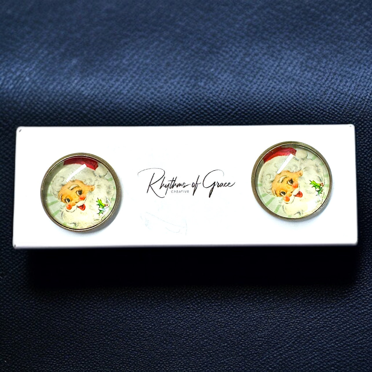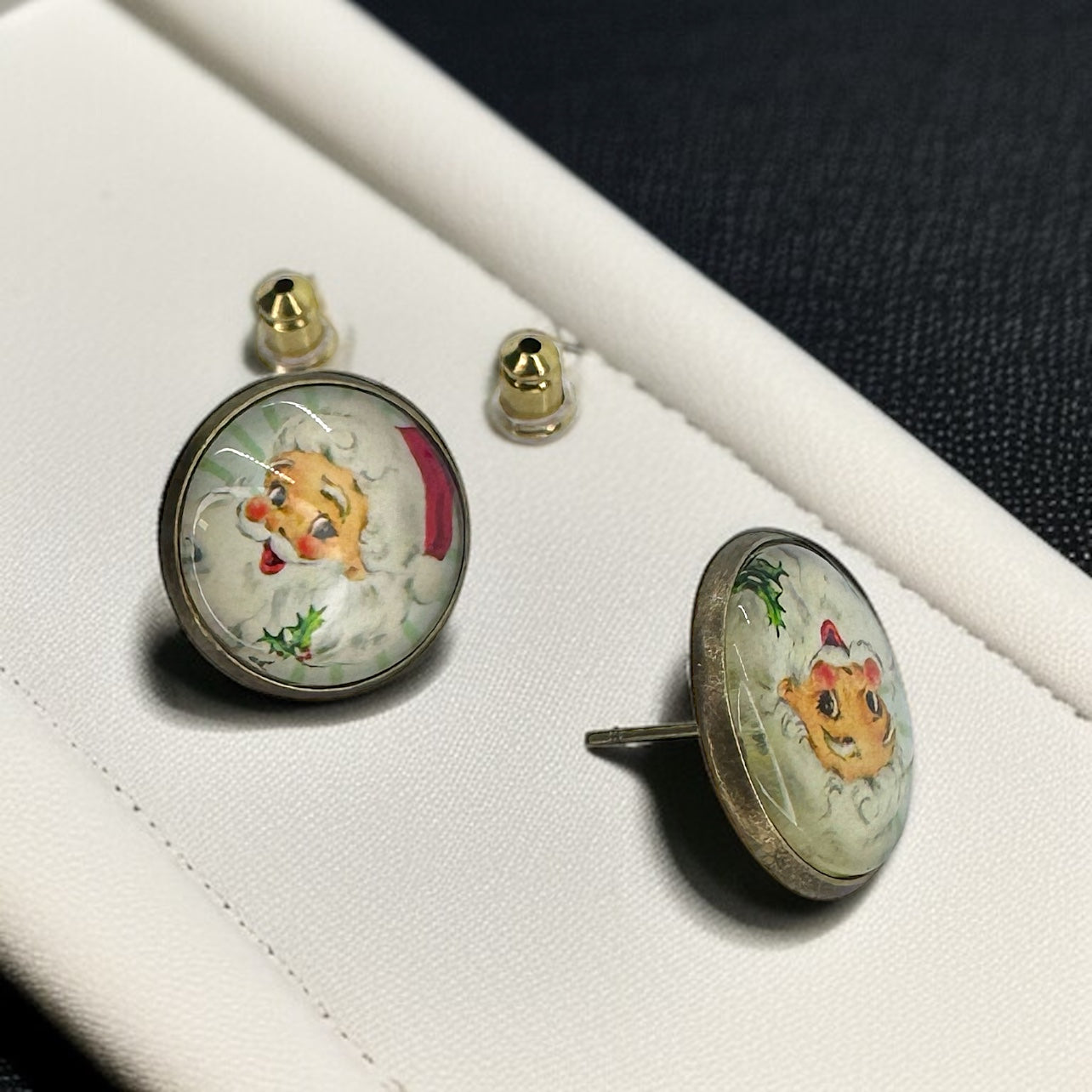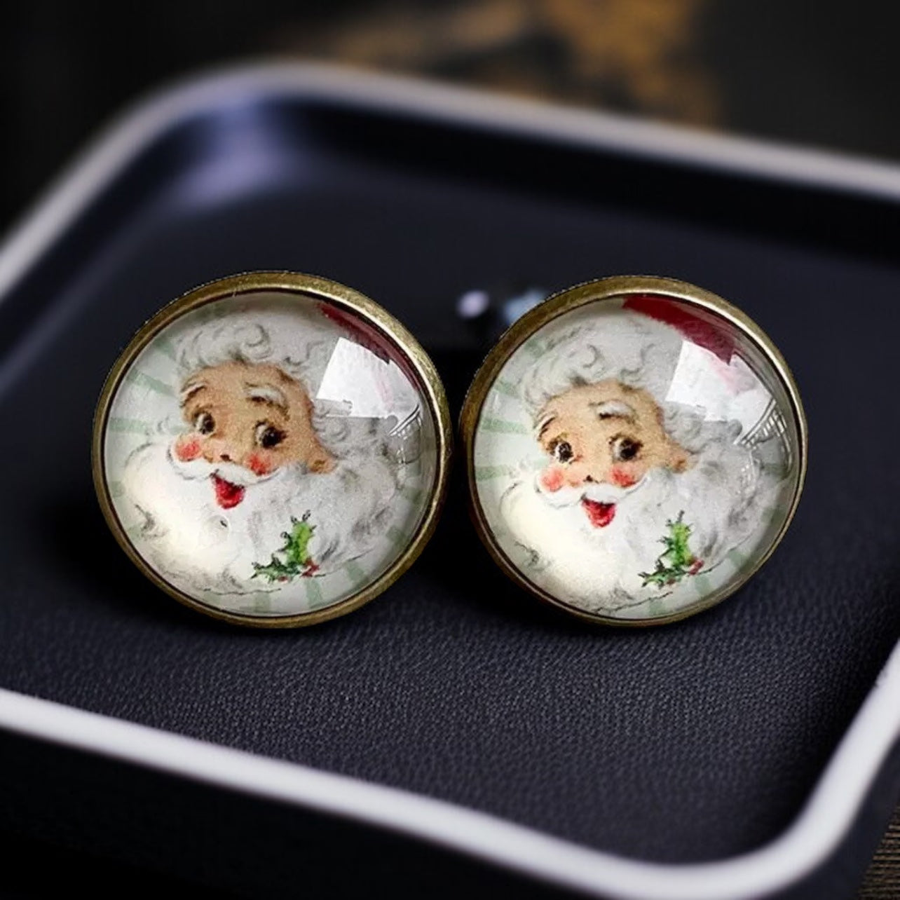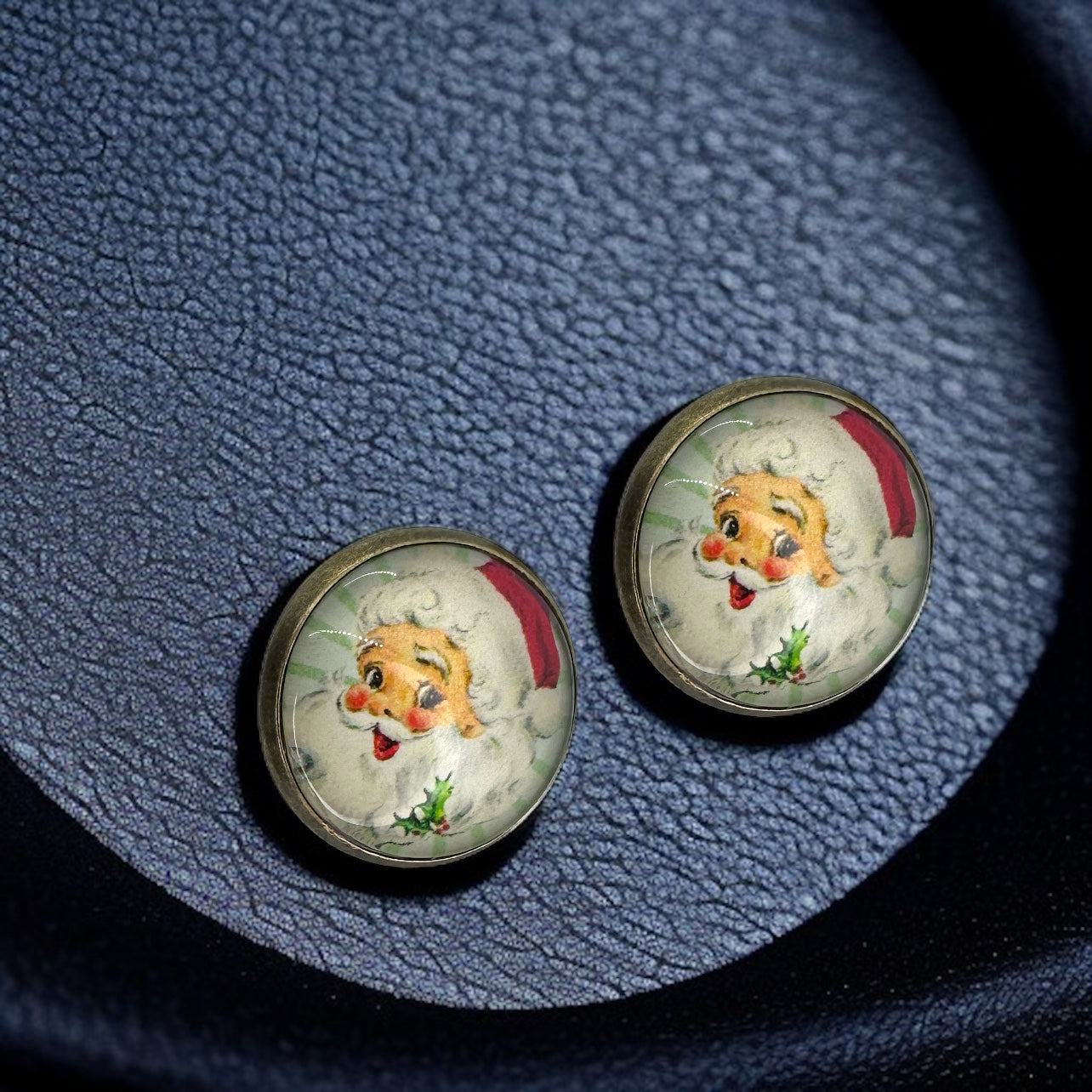 Vintage Santa Cabochon Stud Earrings – A Jolly Holiday Delight!