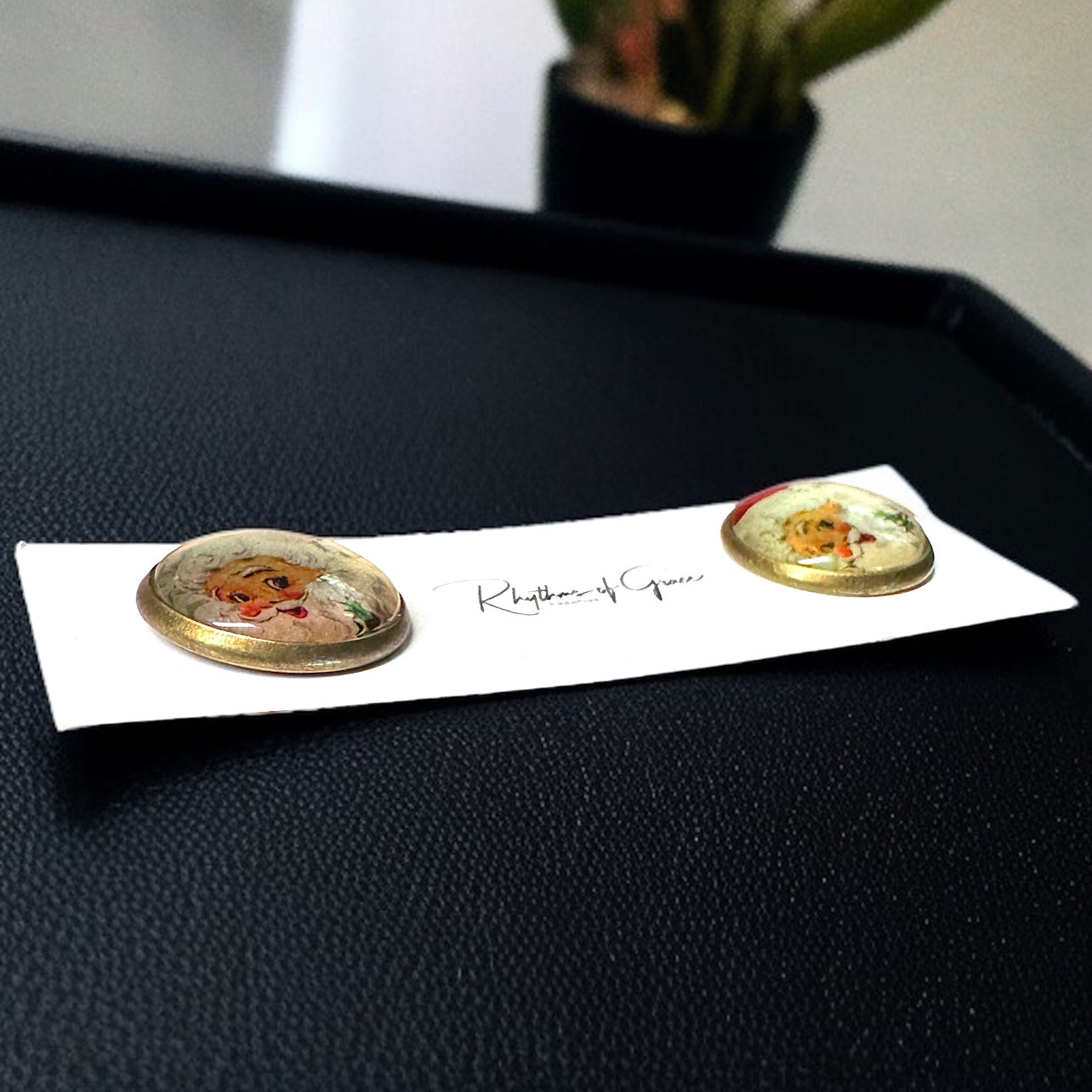 Ho ho ho! Step into the magic of the season with these enchanting Vintage Santa Cabochon Stud Earrings. Perfect for holiday lovers and vintage enthusiasts alike, these charming earrings are a delightful way to spread festive cheer! 🎄