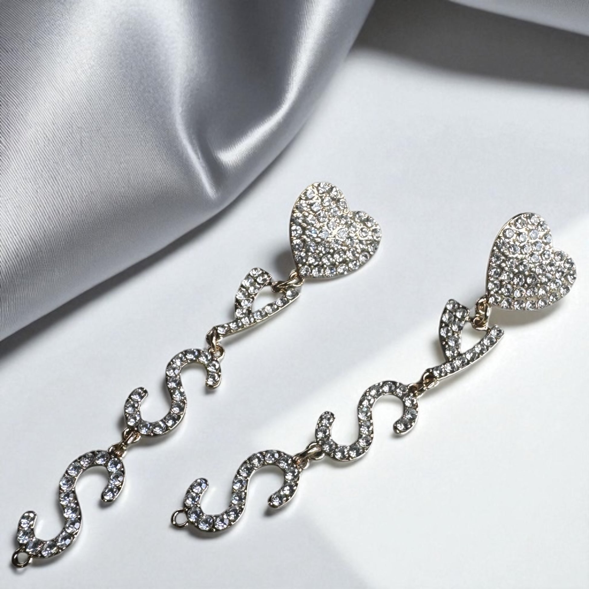 Rhinestone drop earrings, statement earrings, heart dangle earrings, YSSS earrings, sparkle earrings, glam jewelry, Gen Z earrings, trending statement jewelry, holiday gift for her, bold earrings